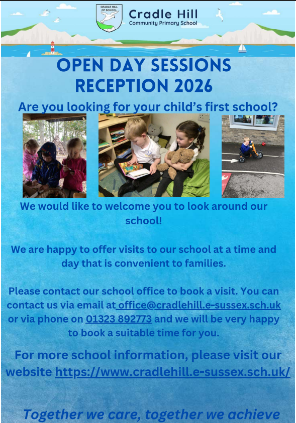If you have additional questions or would like to speak to us please contact the school office on 01323 892773 or email office@cradlehill.e-sussex.sch.uk or andreak@cradlehill.e-sussex.sch.uk