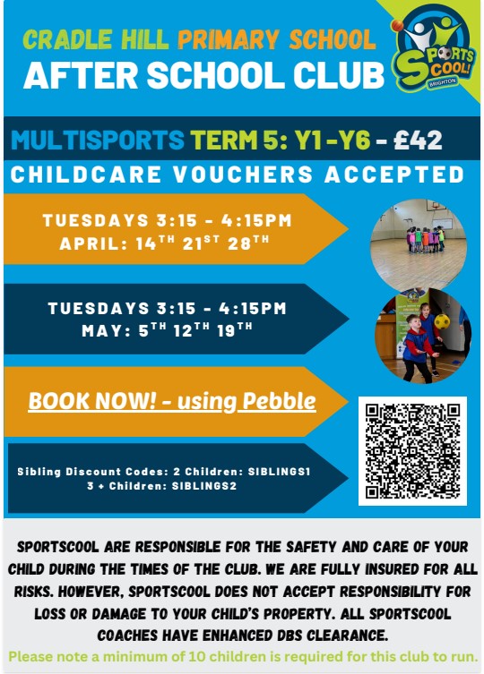 We are pleased to be able to offer a number of clubs for our Easter and Summer holidays.